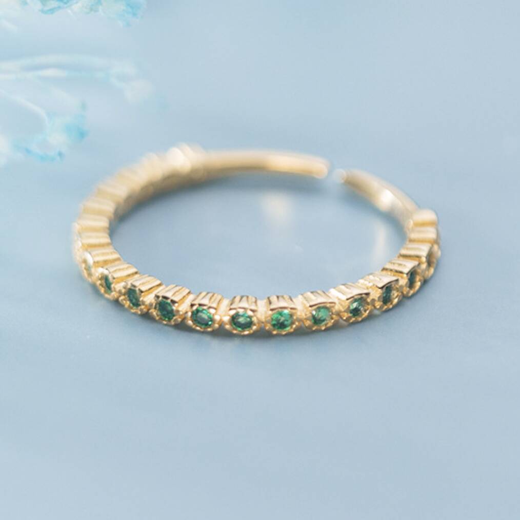 Gold Colour Sterling Silver Green Crystals Adjustable Ring