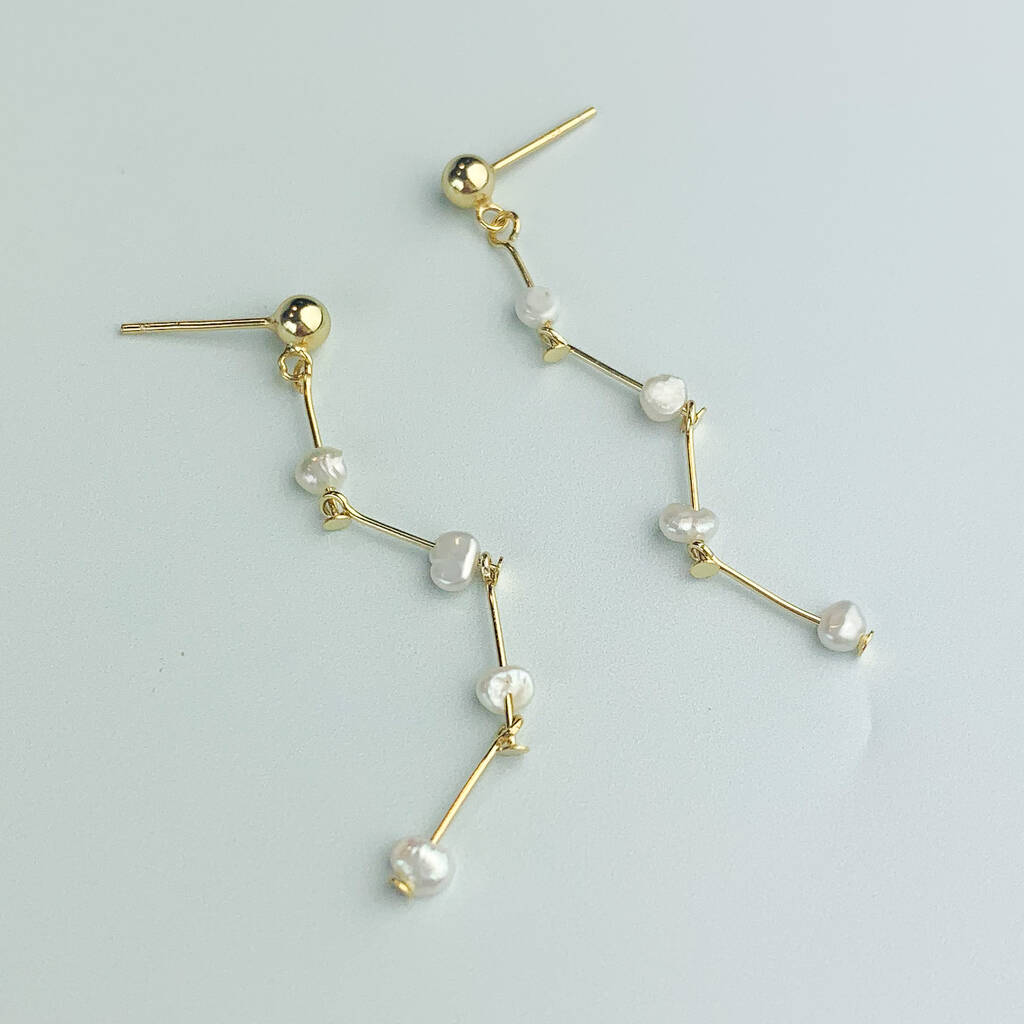 Gold Colour Sterling Silver Pearl Scatter Dangle Stud Earrings