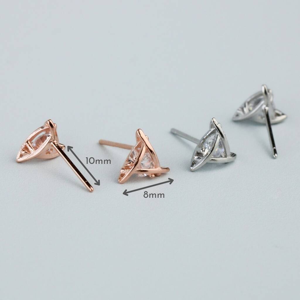 Sterling Silver Abstract Crystal Triangle Stud Earrings