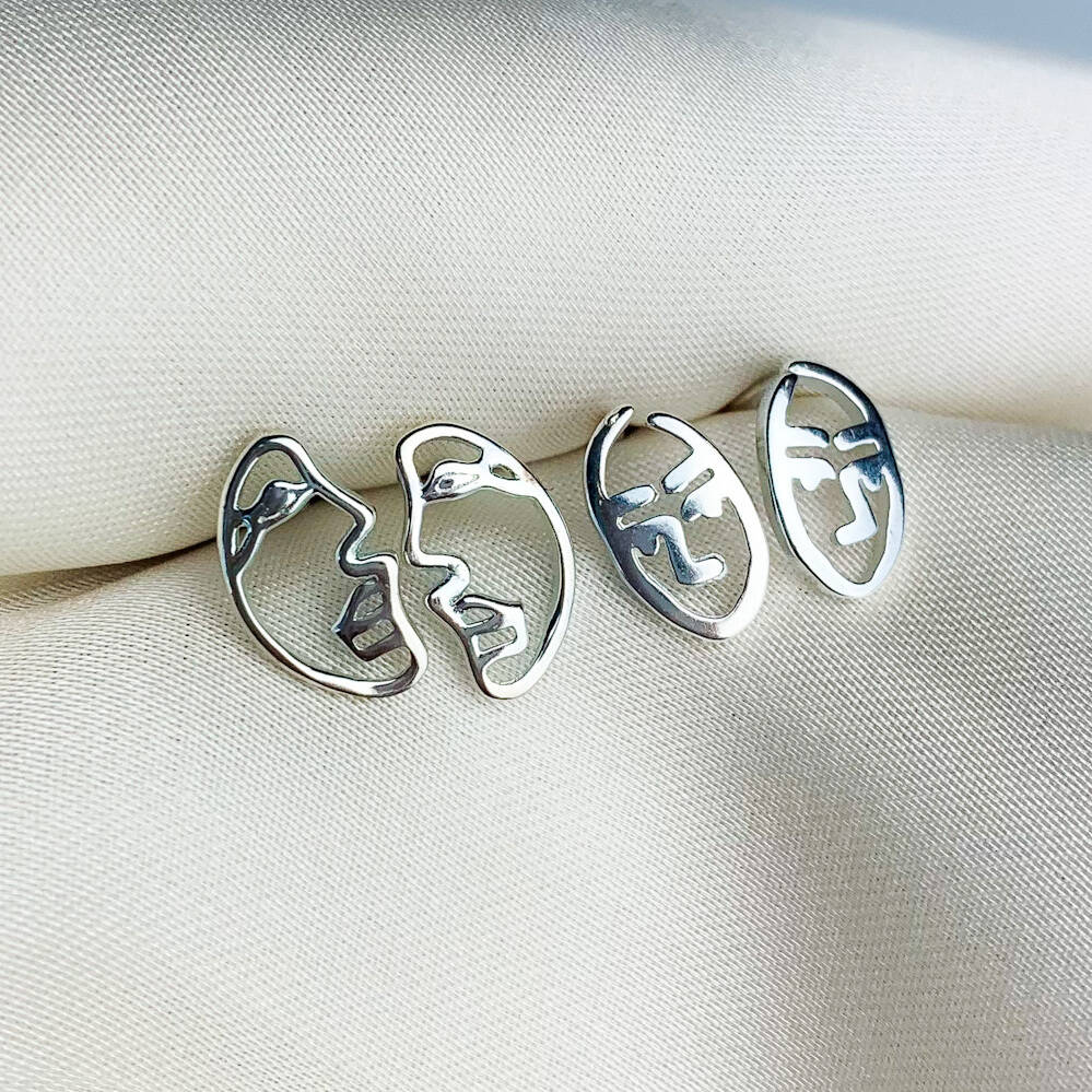 Sterling Silver Abstract Face Stud Earrings, Two Designs