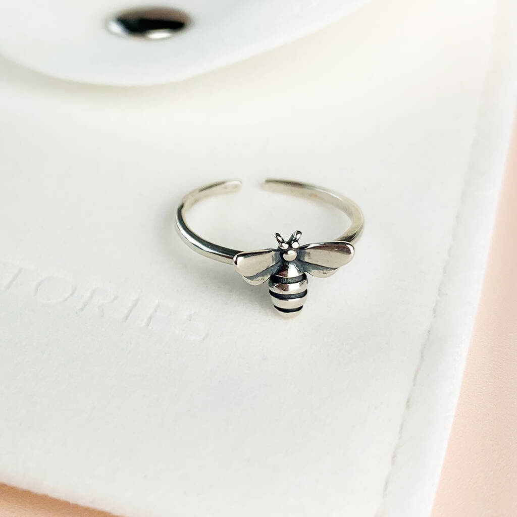Sterling Silver Adjustable Bumble Bee Midi Ring