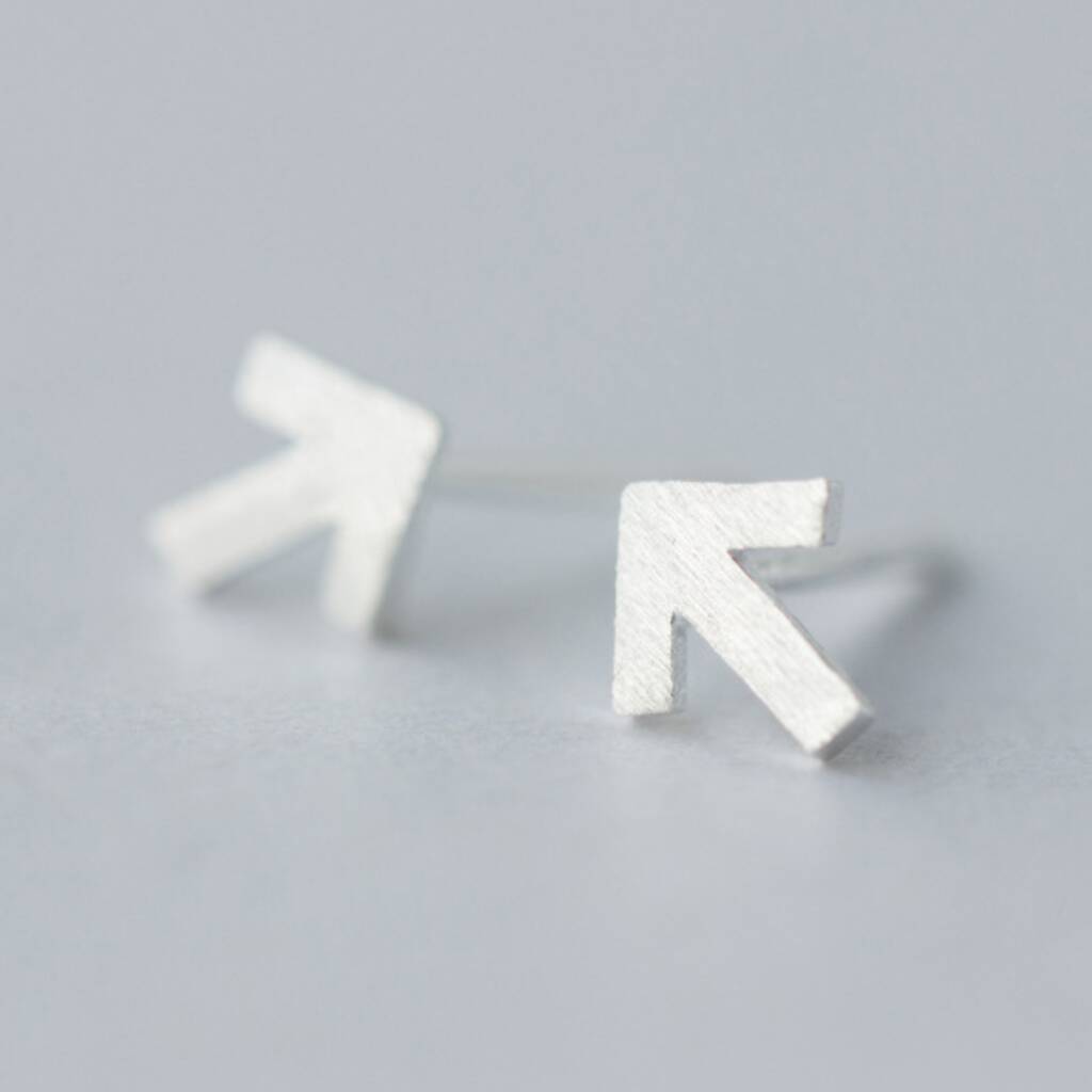 These small stud earrings are made of quality sterling silver with a brushed finish and come with butterfly backs. They feature a simple pointing arrow shape.