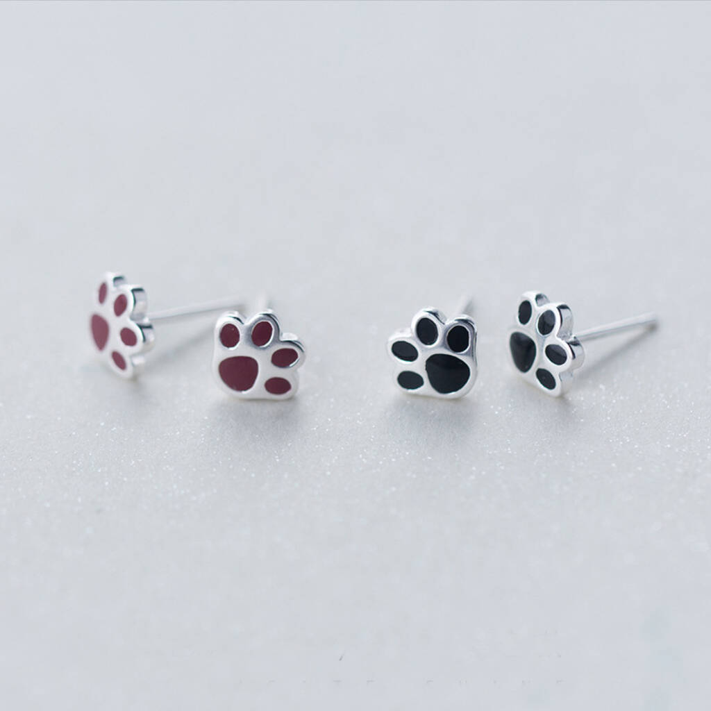 These simple stud earrings are made of sterling silver and come with butterfly backs. They feature a simple par print design with black or dark red details.