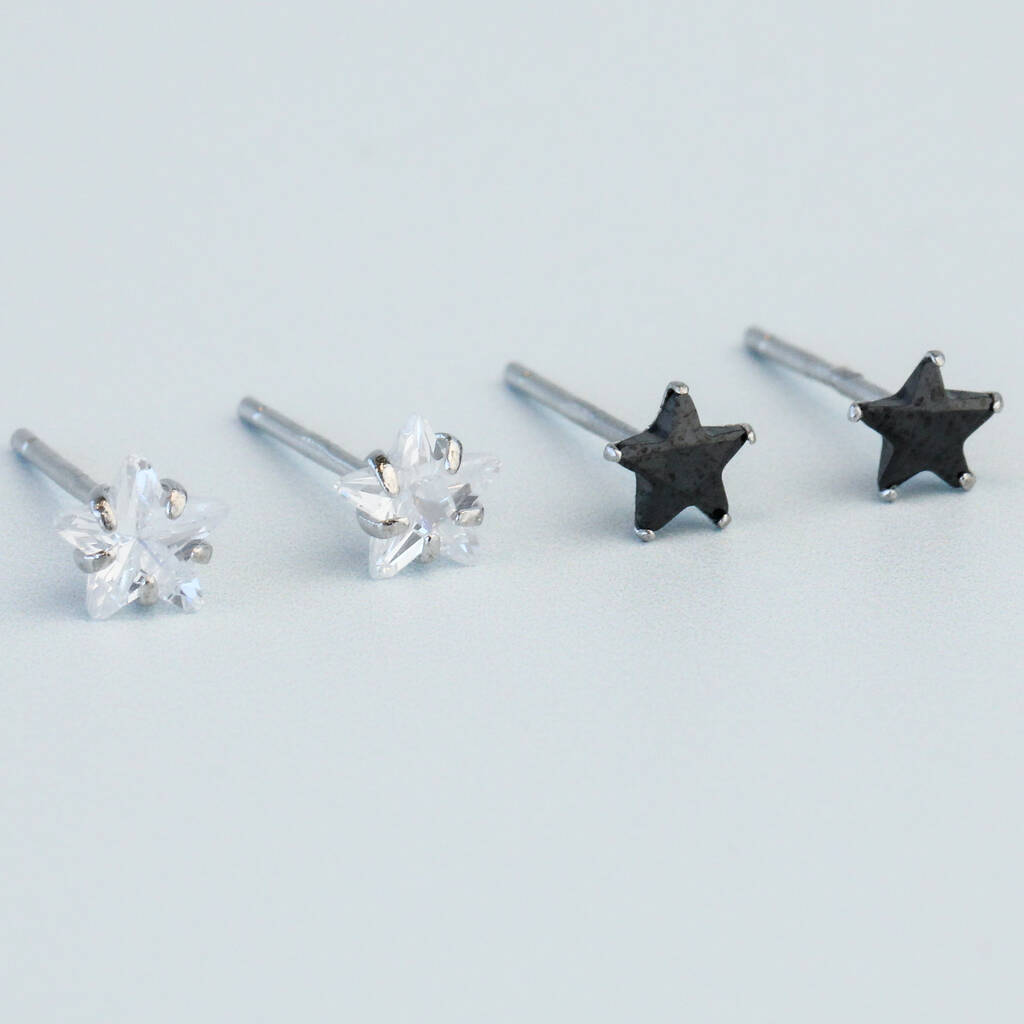 Sterling Silver Black Or White Crystal Star Stud Earrings