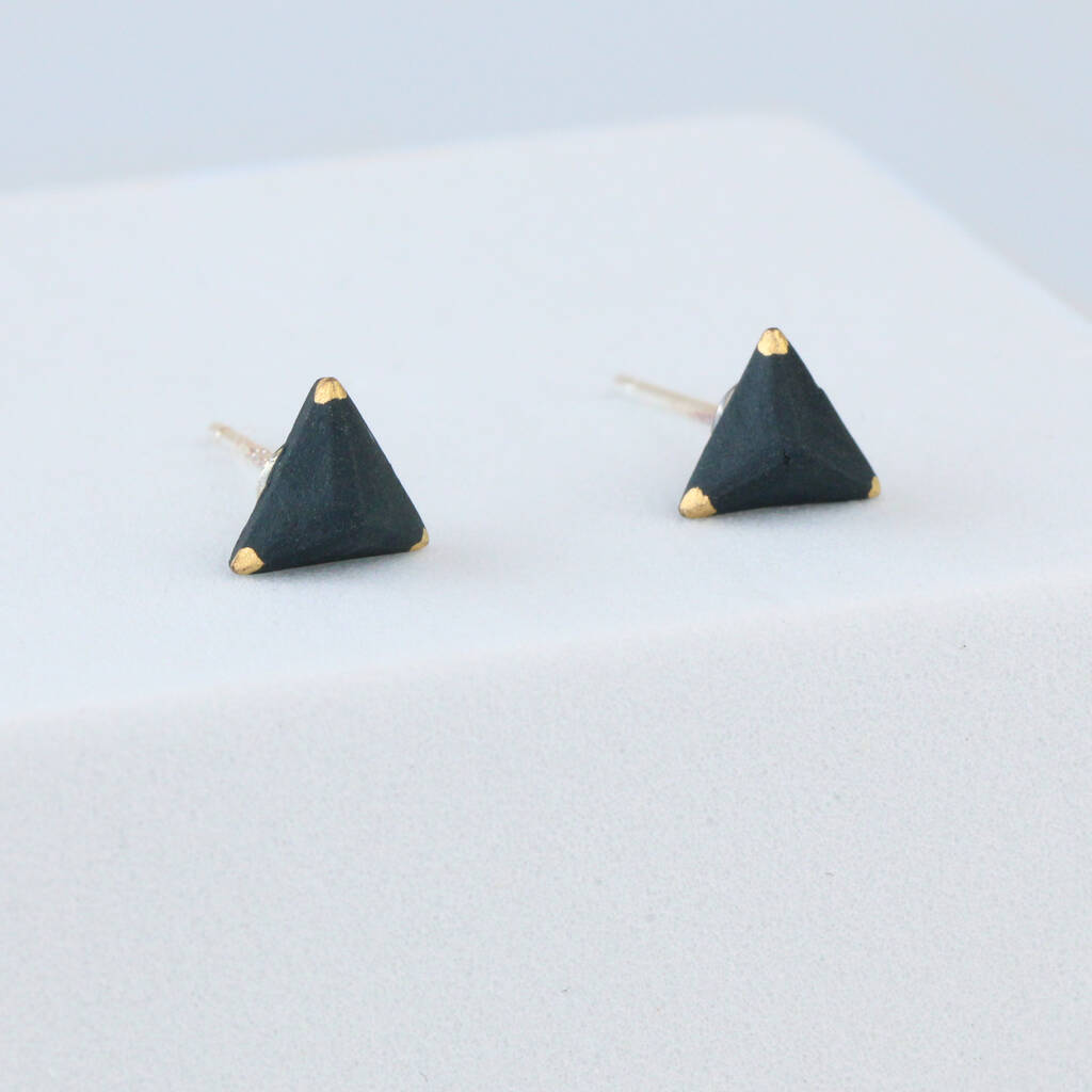These simple stud earrings are made of quality sterling silver and come with butterfly backs. They feature a pyramid shape with gold coloured tips.