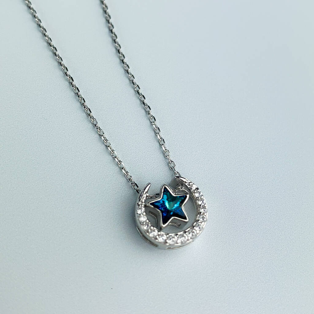 Sterling Silver Blue Crystal Star Pendant Necklace