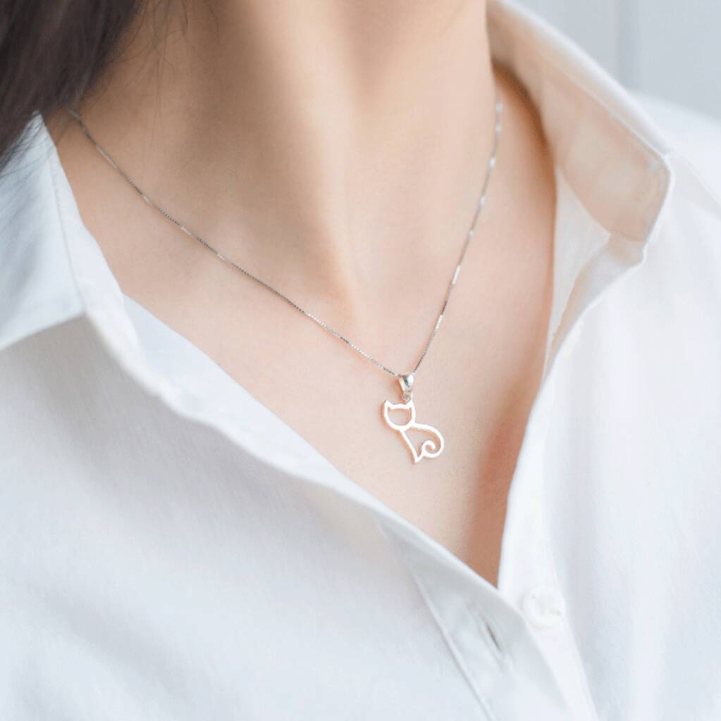 Sterling Silver Cat Pendant Necklace