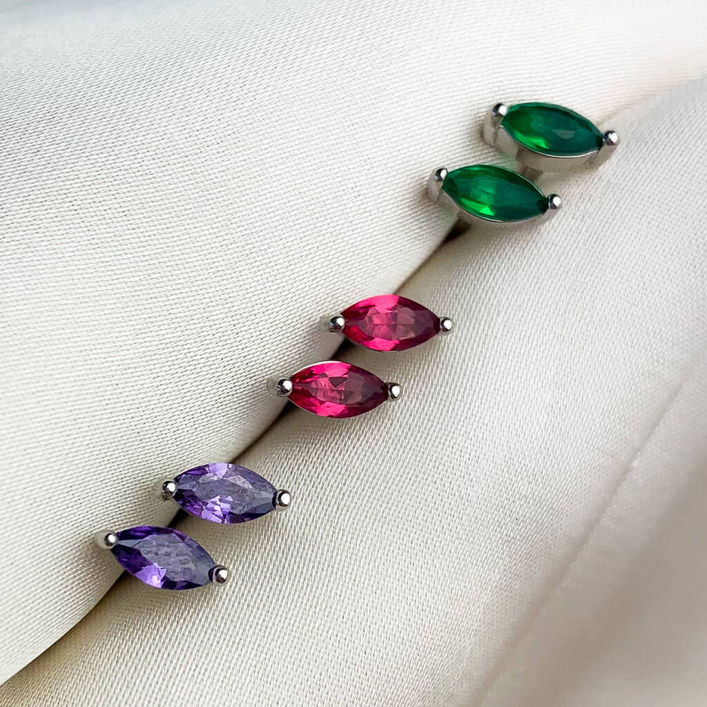 Sterling Silver Colourful Oval Crystal Stud Earrings