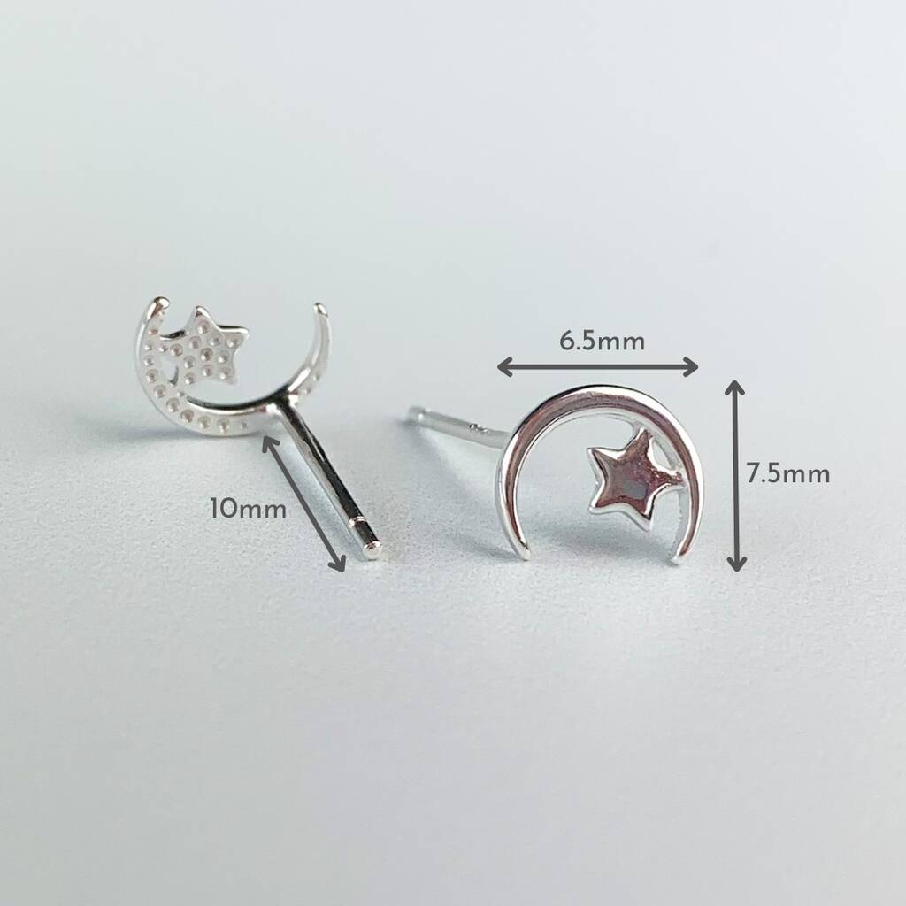 Sterling Silver Crescent Moon And Star Stud Earrings