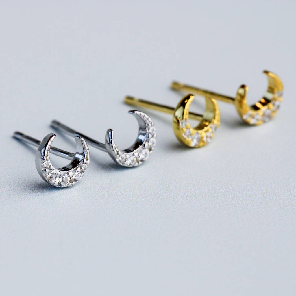 Sterling Silver Crystal Crescent Moon Stud Earrings