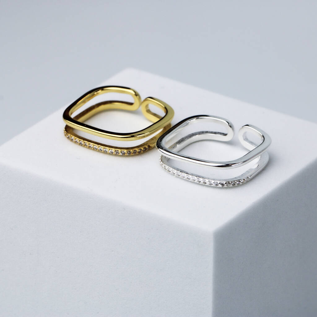 Sterling Silver Crystal Detail Square Adjustable Ring