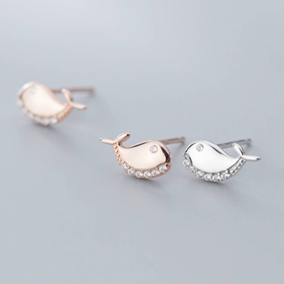 Sterling Silver Crystal Detail Whale Stud Earrings