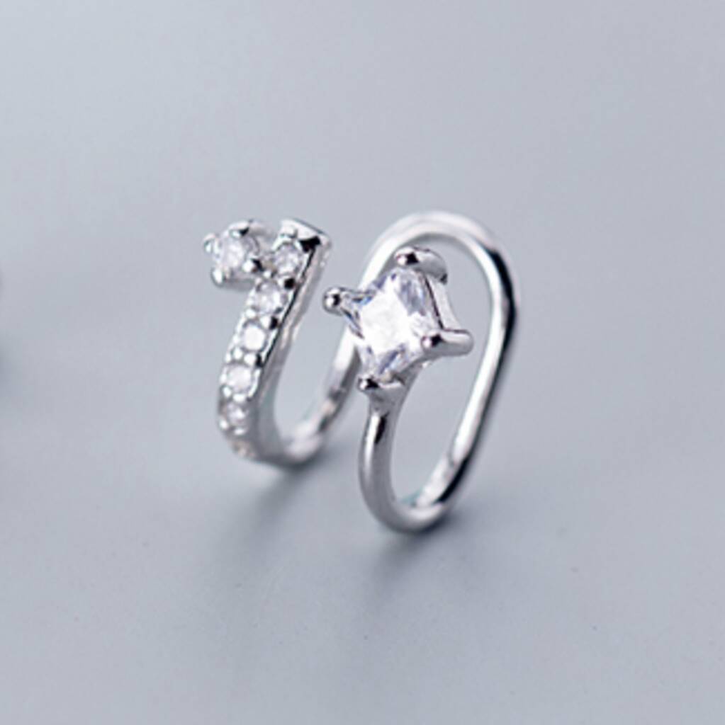 This small ear cuff is made of quality sterling silver and can be gently adjusted for a better fit. It features two bars with white crystal details.