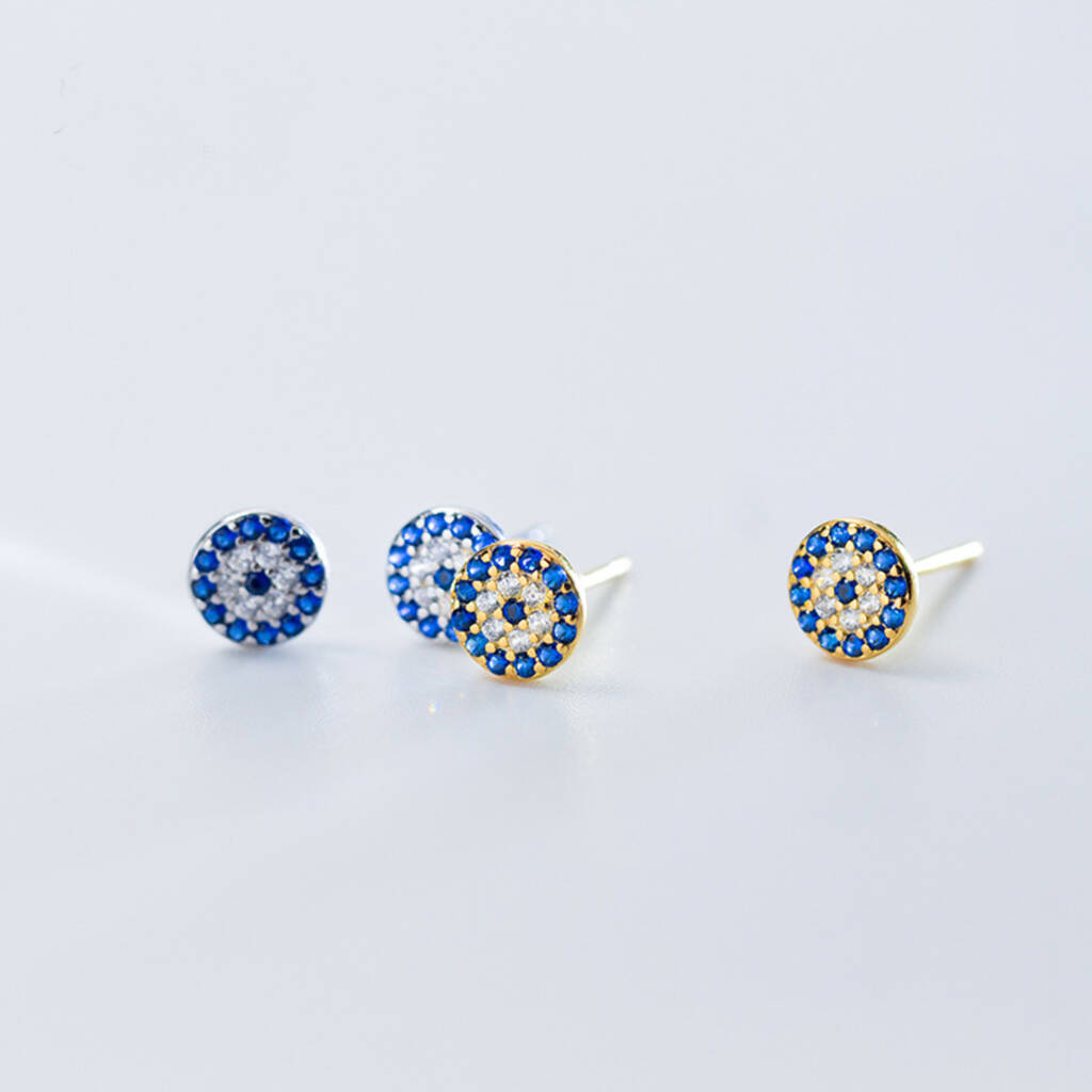 Sterling Silver Crystal Evil Eye Stud Earrings
