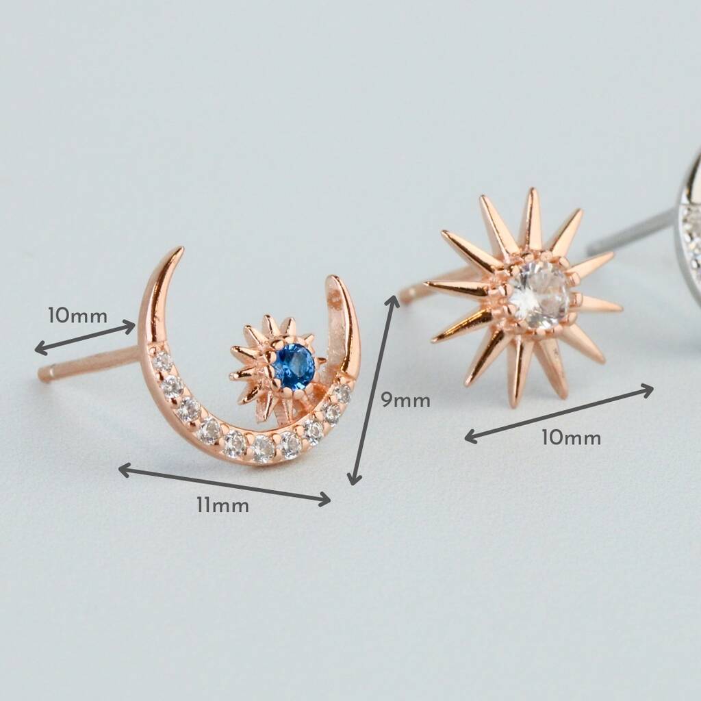 Sterling Silver Crystal Moon And Star Stud Earrings