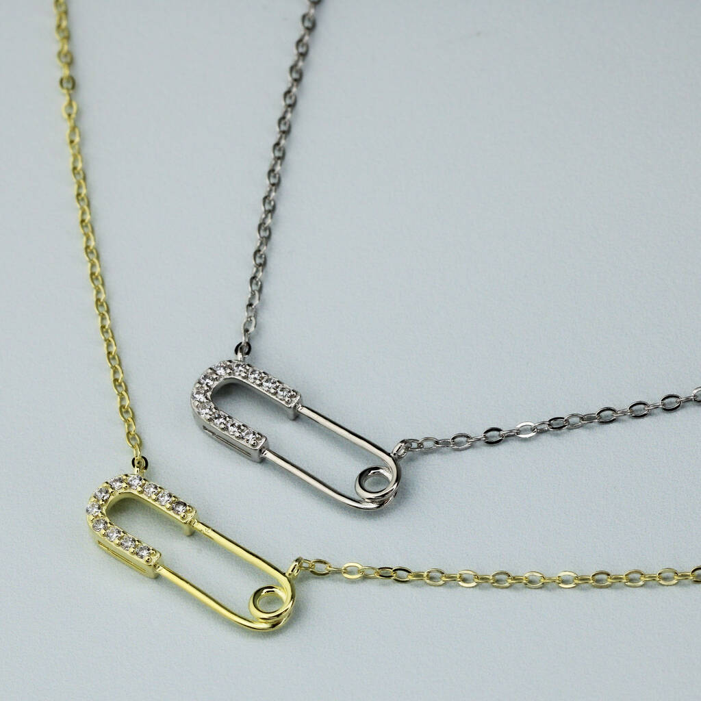 Sterling Silver Crystal Safety Pin Pendant Necklace