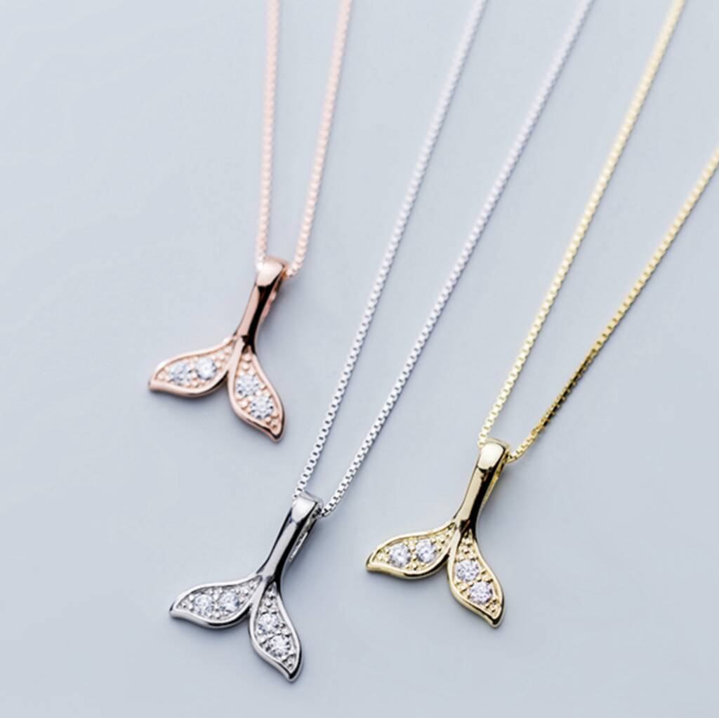Sterling Silver Crystal Whale Fin Pendant Necklace