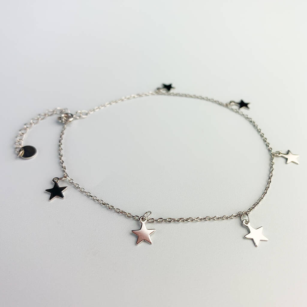 Sterling Silver Dangle Star Charm Anklet