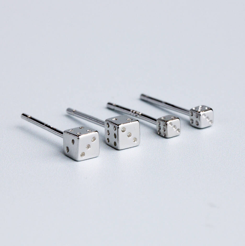 Sterling Silver Dice Stud Earrings