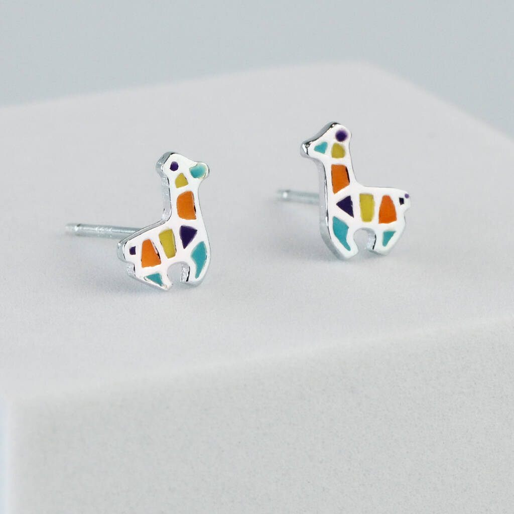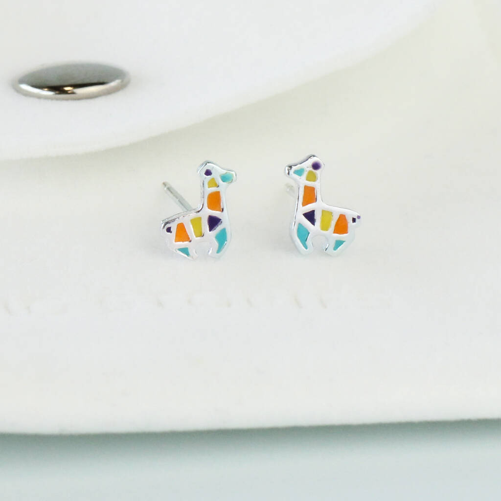 Sterling Silver Geometric Llama Stud Earrings