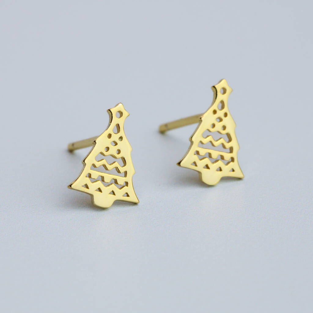 Sterling Silver Gold Colour Christmas Stud Earrings