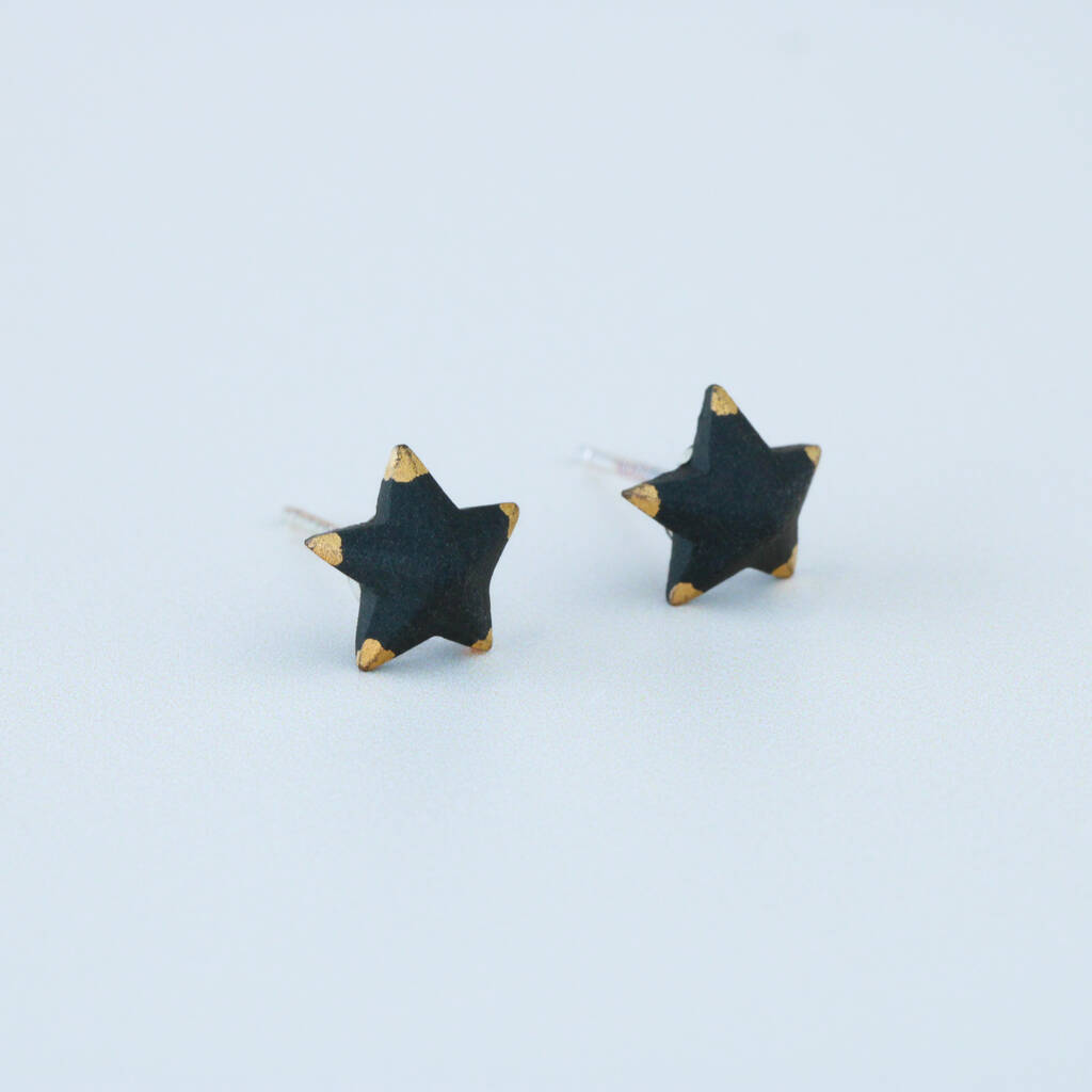These simple stud earrings are made of quality sterling silver and come with butterfly backs. They feature a star shape with gold coloured tips.
