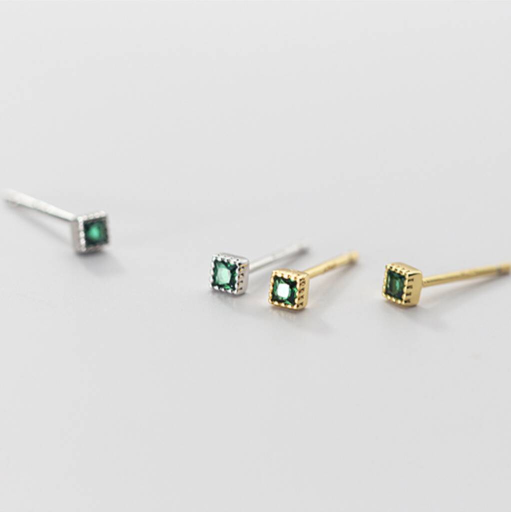 Sterling Silver Green Crystal Square Stud Earrings
