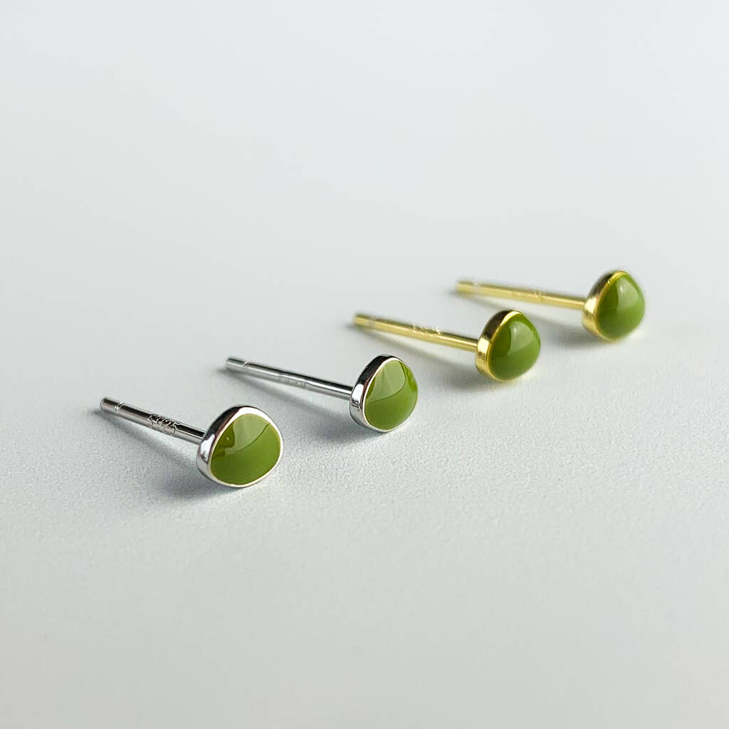 Sterling Silver Green Oval Stud Earrings