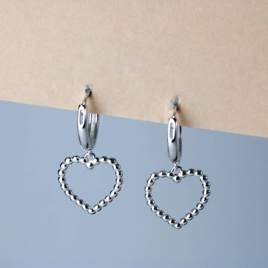 Sterling Silver Heart Dangle Huggie Hoop Earrings