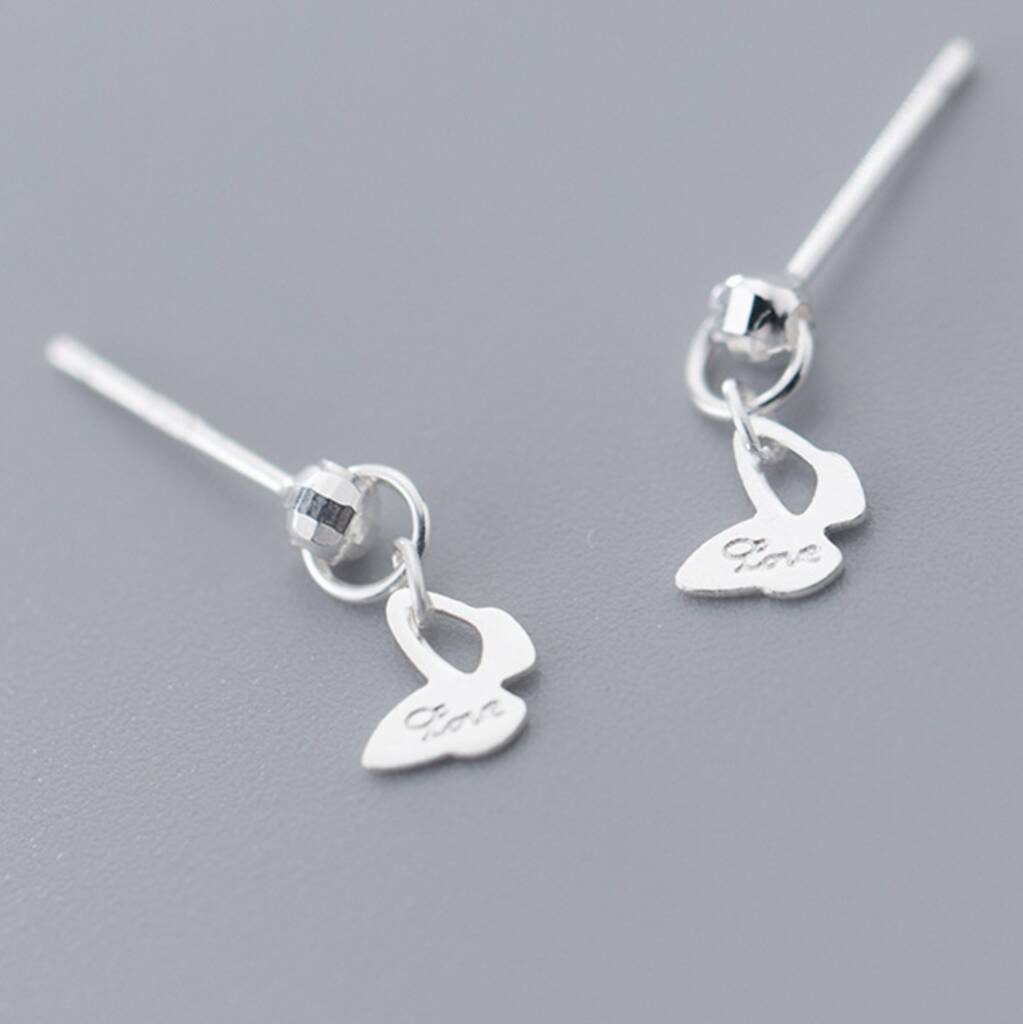 These cute stud earrings are made of quality sterling silver and come with butterfly backs. They feature a dangling butterfly with a cutout detail and the word 'love' engraved on the wing.
