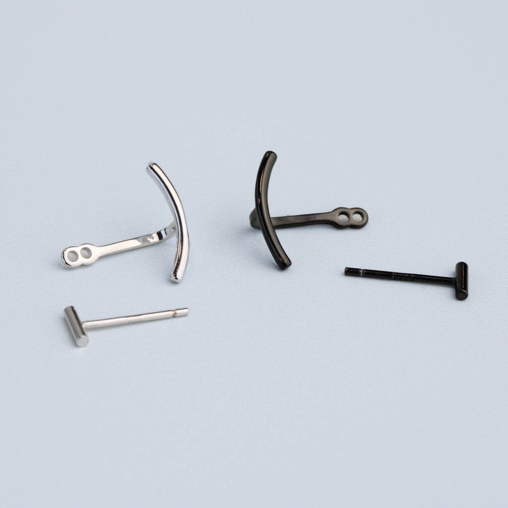 Sterling Silver Minimalist Curve Ear Jacket Stud Earrings