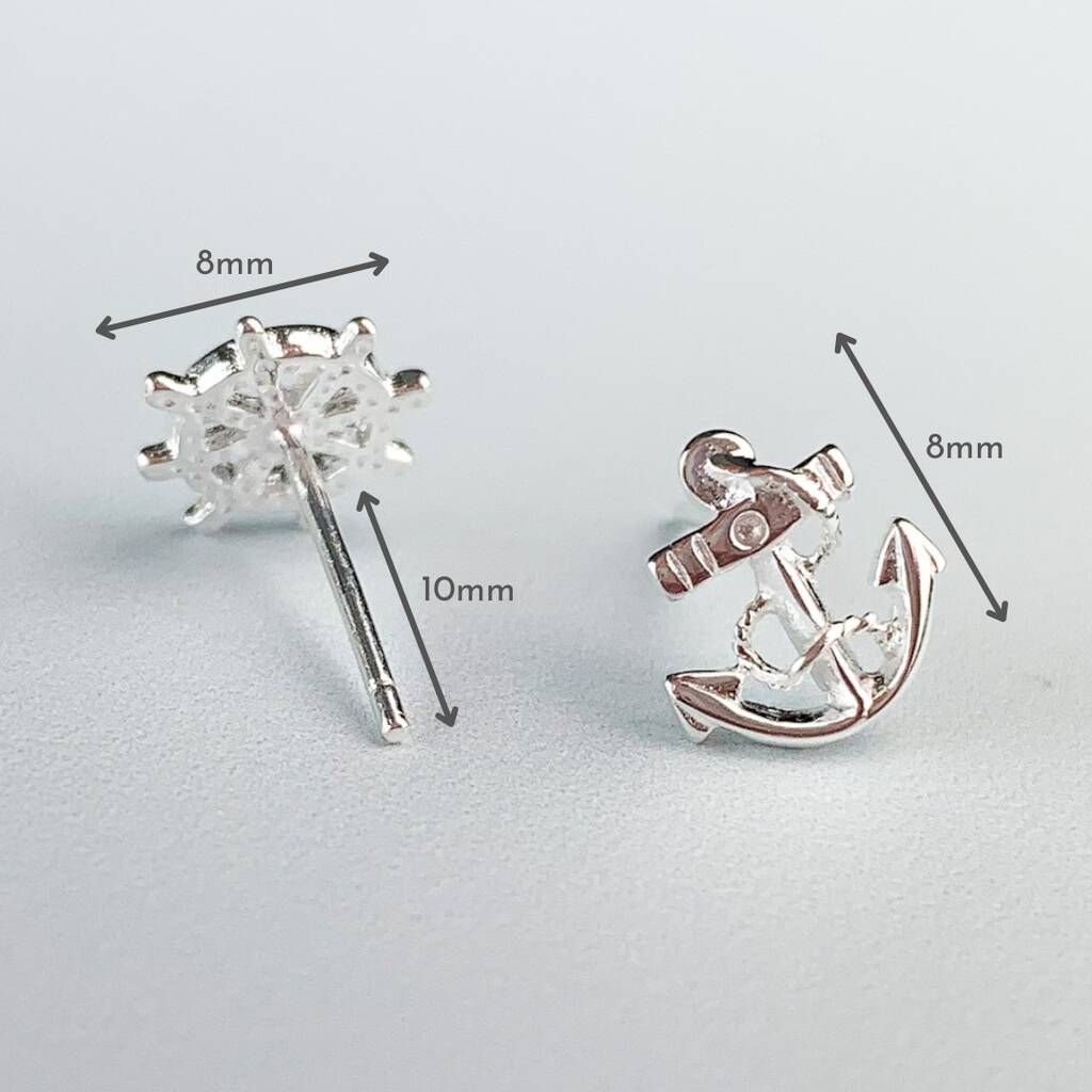 Sterling Silver Nautical Anchor And Wheel Stud Earrings