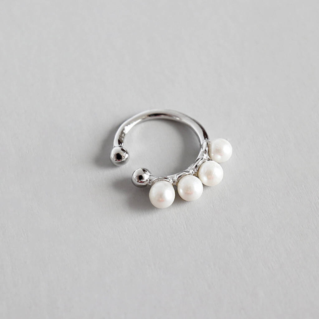 This dainty ear cuff is made of quality sterling silver and can be gently adjusted for a better fit. It features four round pearls on one side of the hoop.