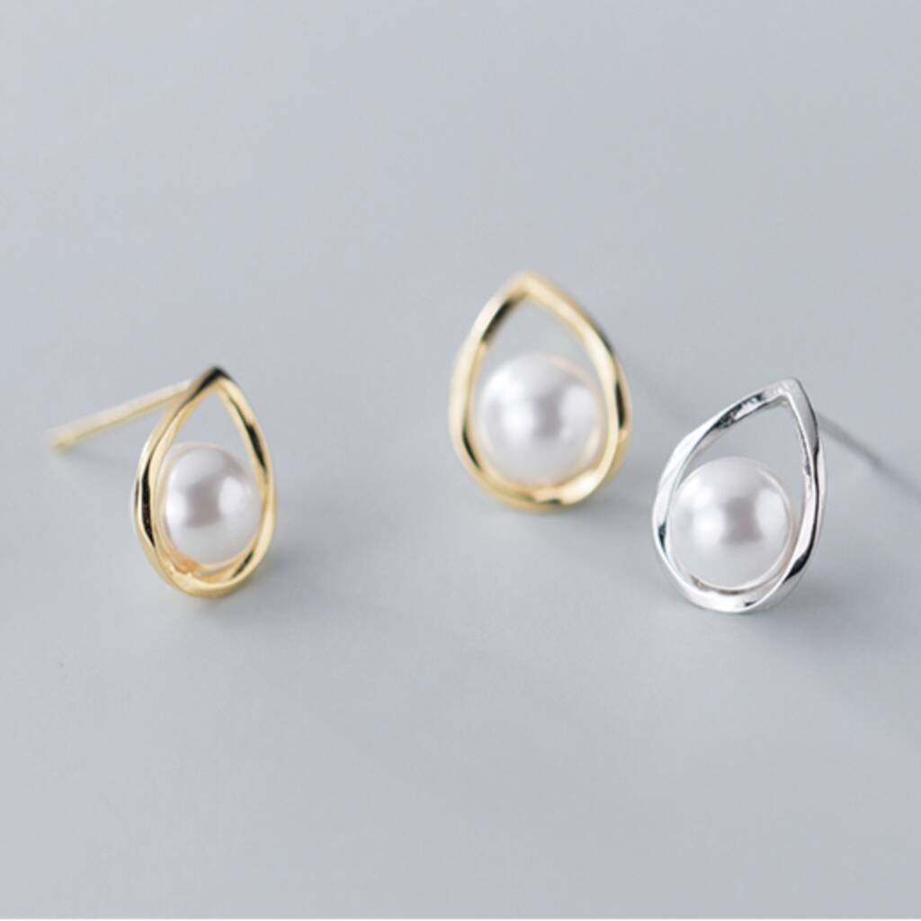 Sterling Silver Pearl Teardrop Stud Earrings