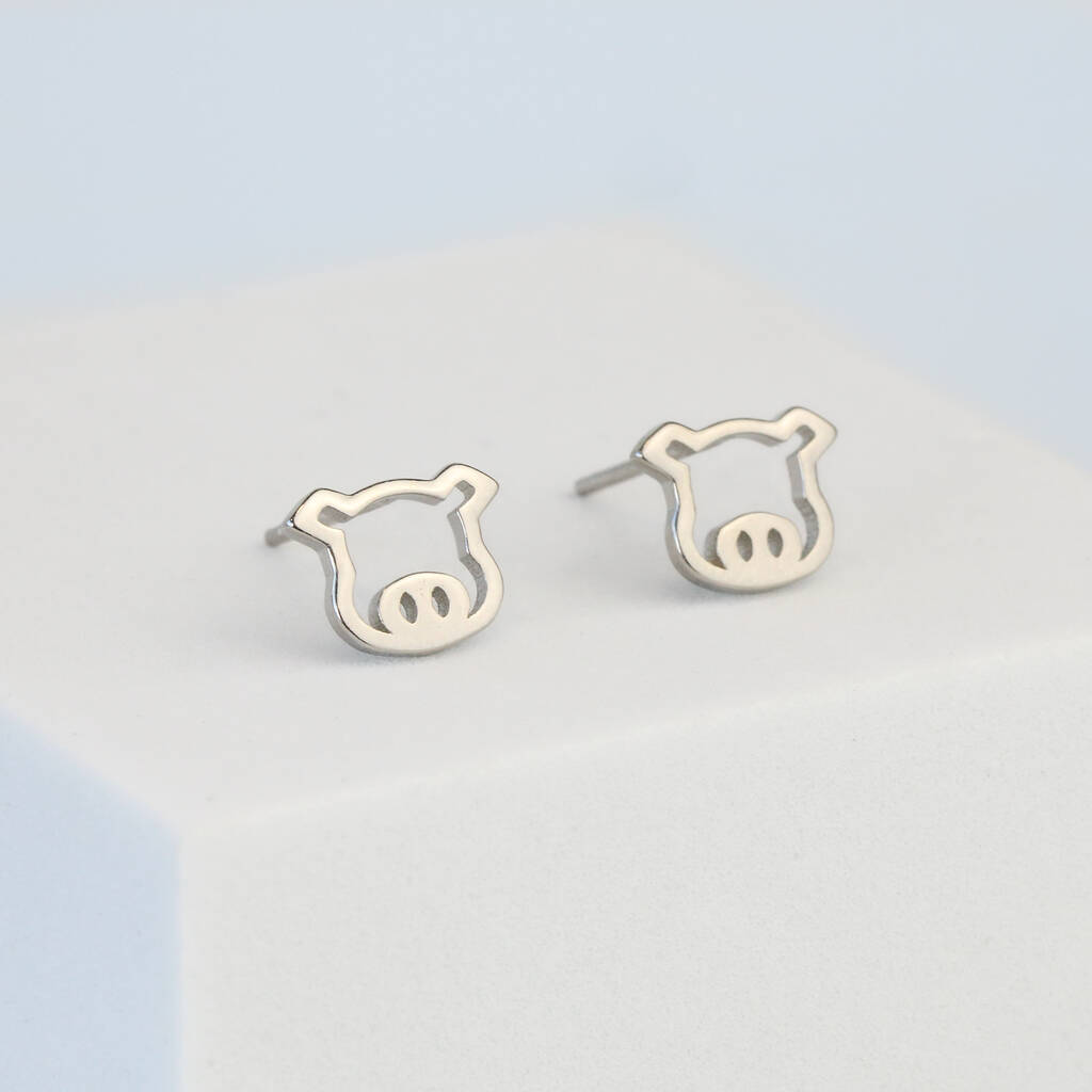 Sterling Silver Pig Face Stud Earrings