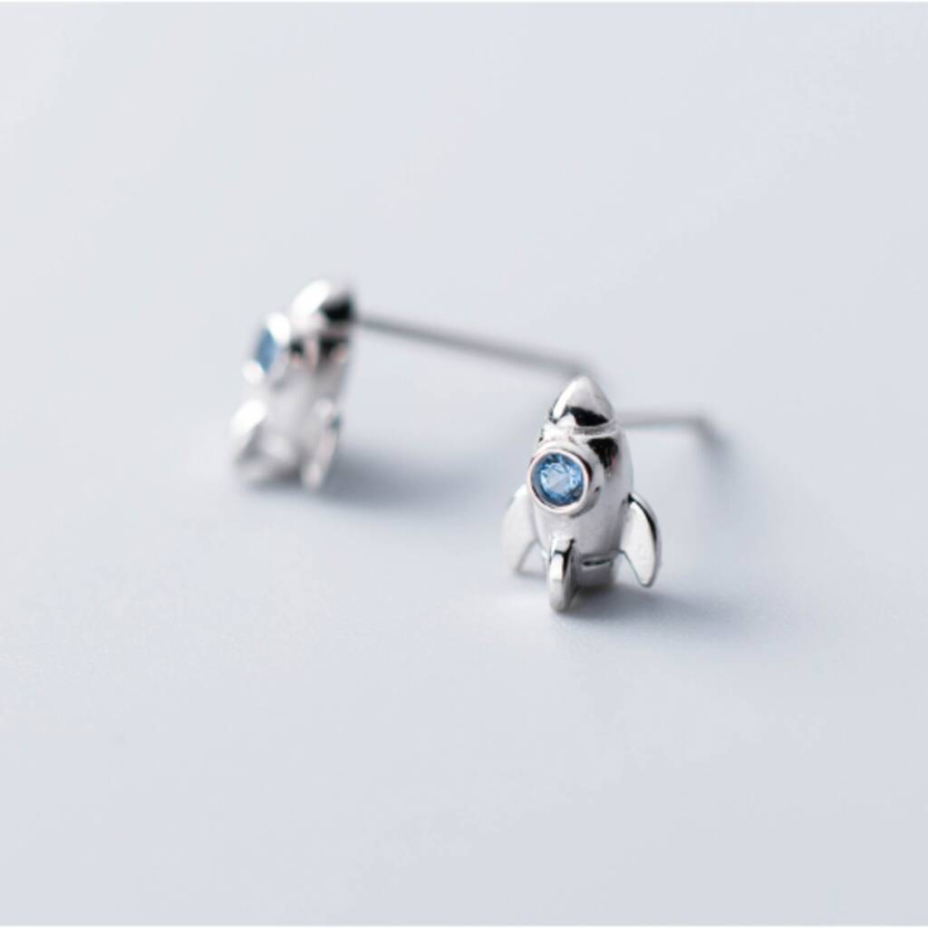 Sterling Silver Rocket Ship Stud Earrings