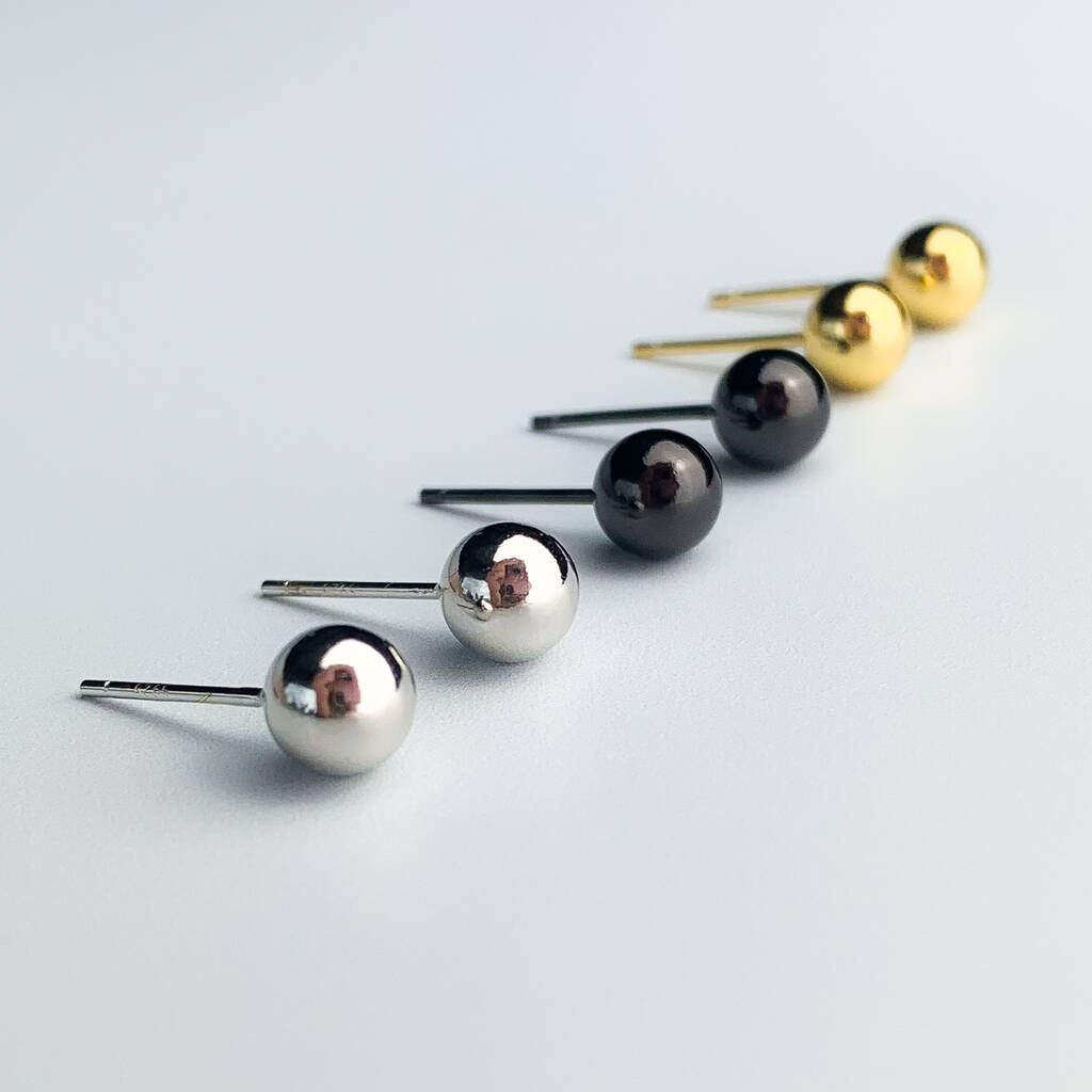 Sterling Silver Simple Ball Stud Earrings, Two Sizes