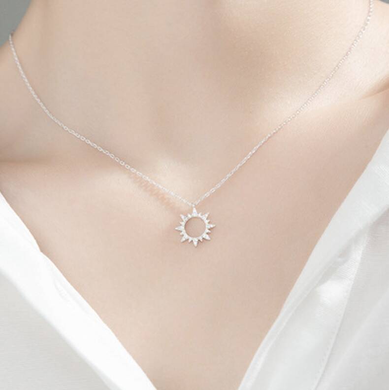 Sterling Silver Sparkly Sun Pendant Necklace