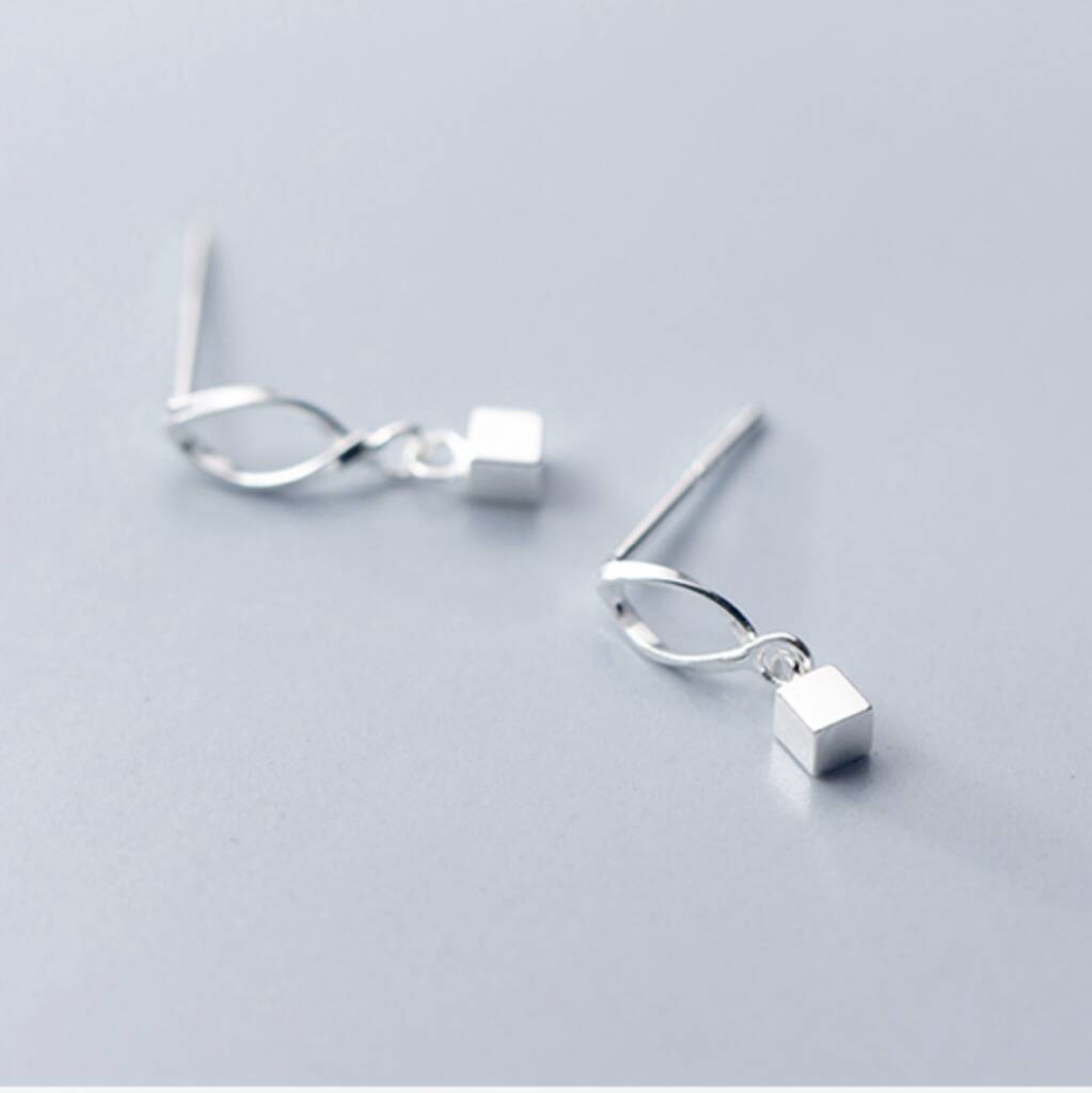 Sterling Silver Square Twist Drop Stud Earrings