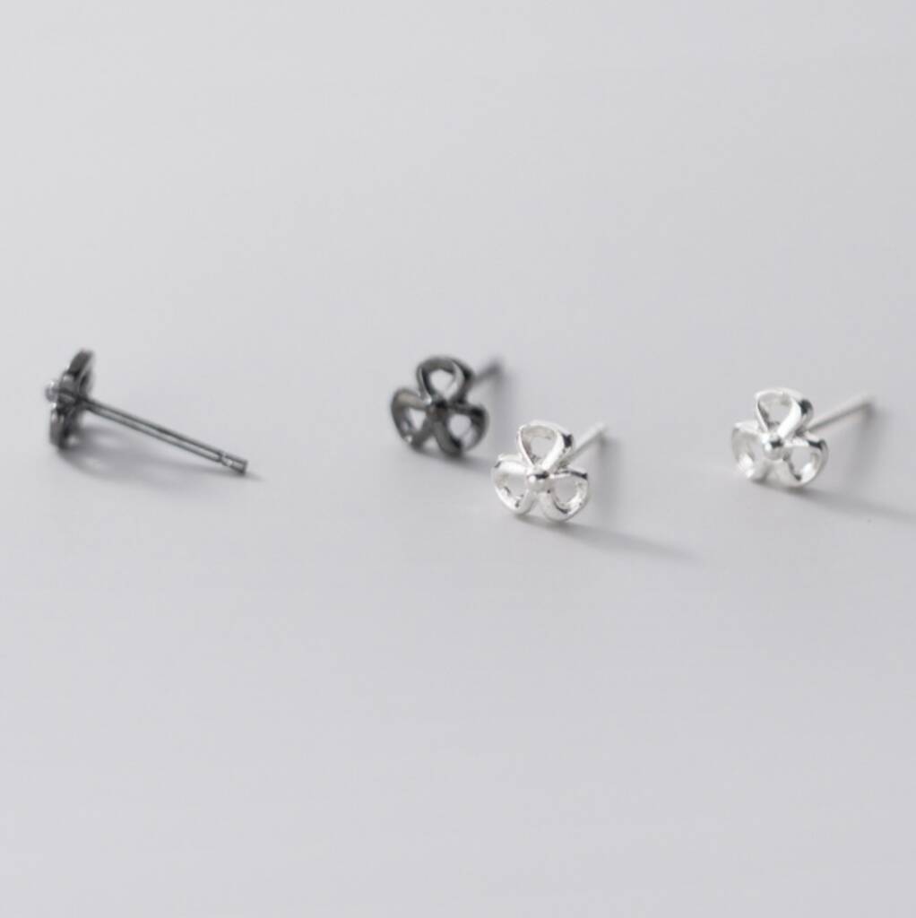 Sterling Silver Tiny Clover Flower Stud Earrings