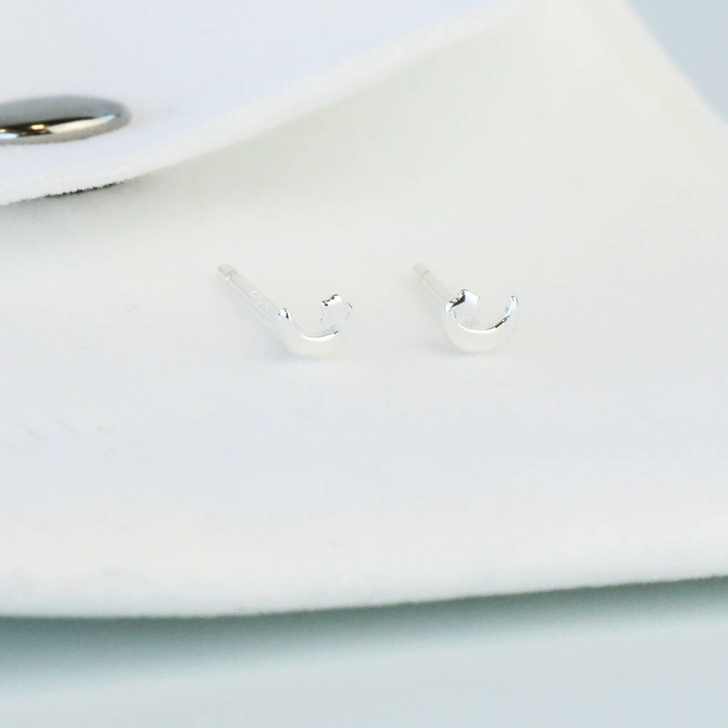 Sterling Silver Tiny Crescent Moon Stud Earrings