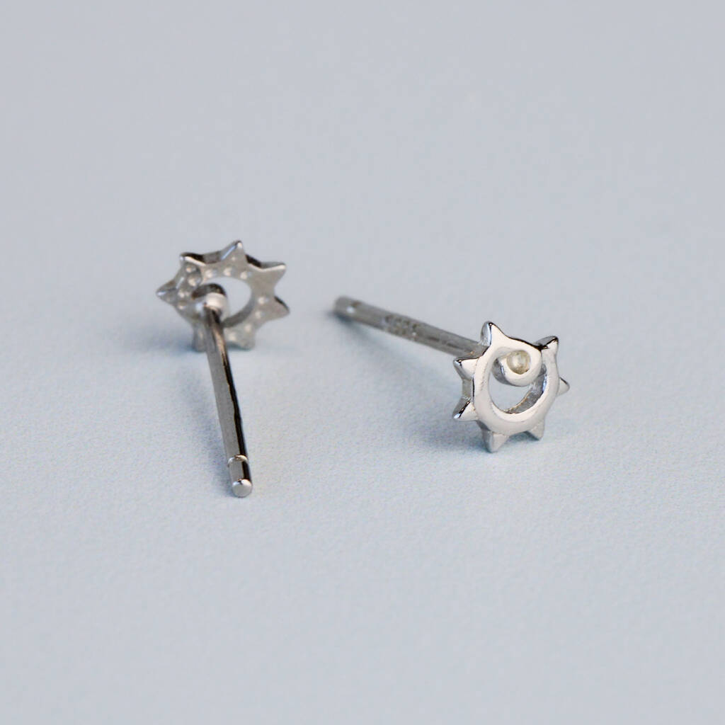 Sterling Silver Tiny Sun Stud Earrings