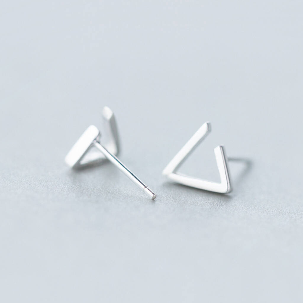 These simple stud earrings are made of quality sterling silver and come with butterfly backs. They feature a simple triangle design with a gap at the point.