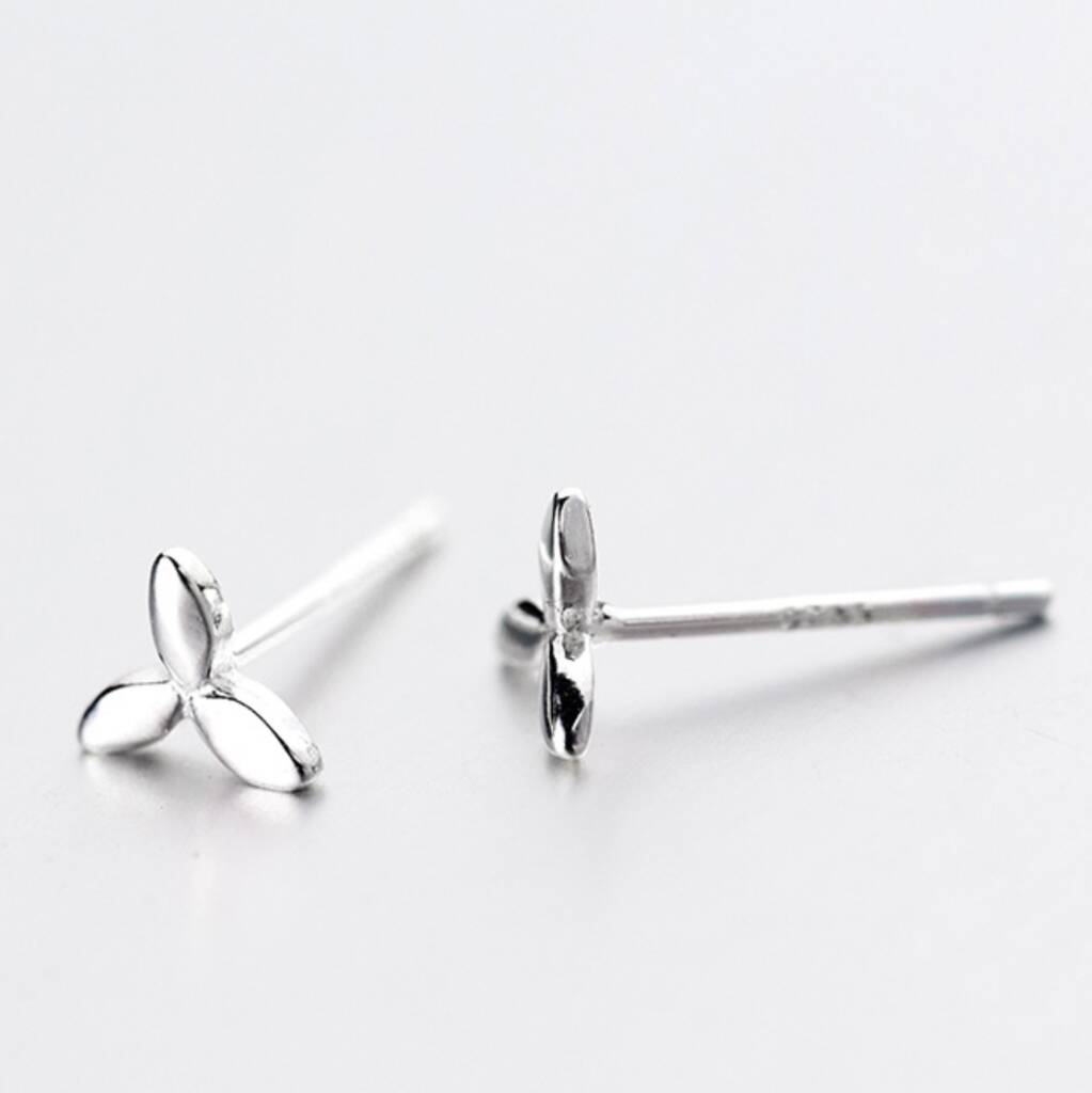 These simple stud earrings are made of quality sterling silver and come with butterfly backs. They feature a simple three pointed leaf design.