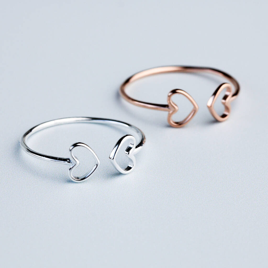 Sterling Silver Two Hearts Adjustable Ring