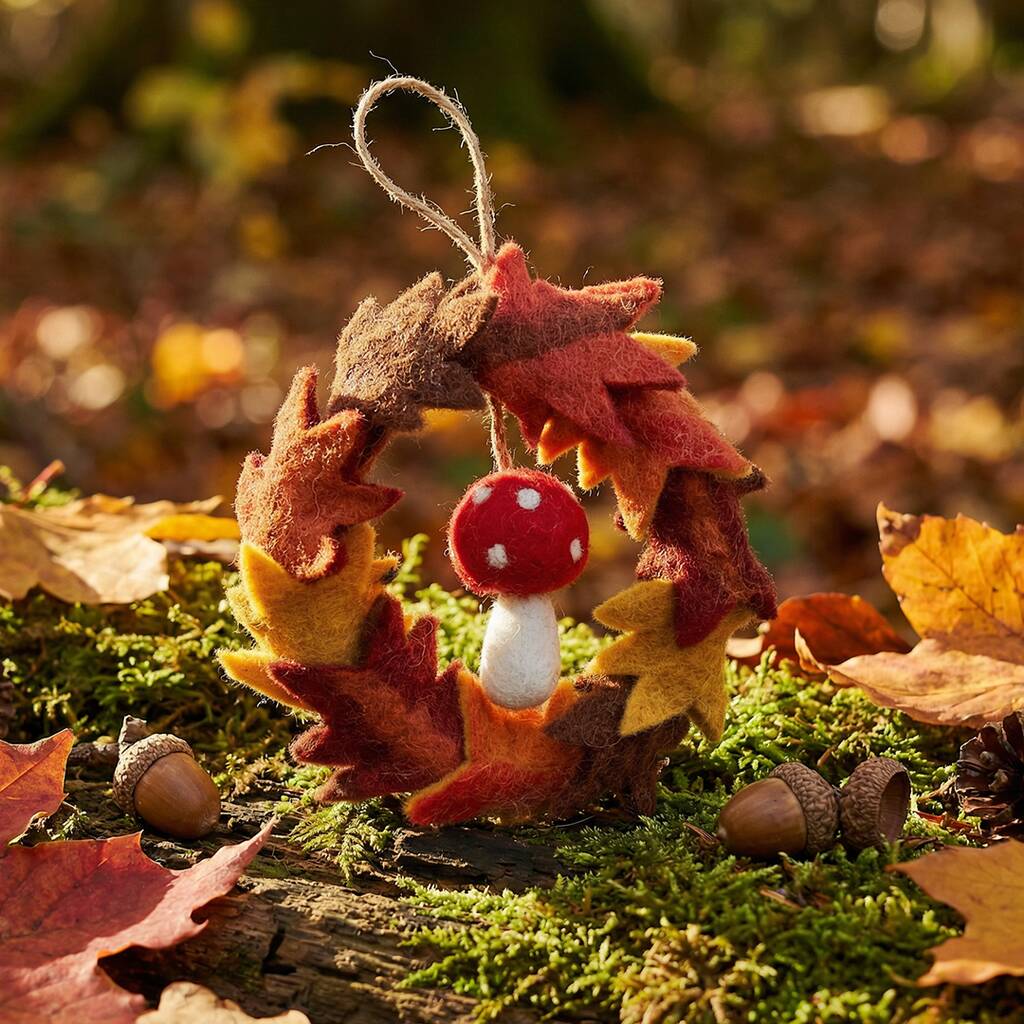 Handmade Felt Autumn Leaves And Toadstool Wreath