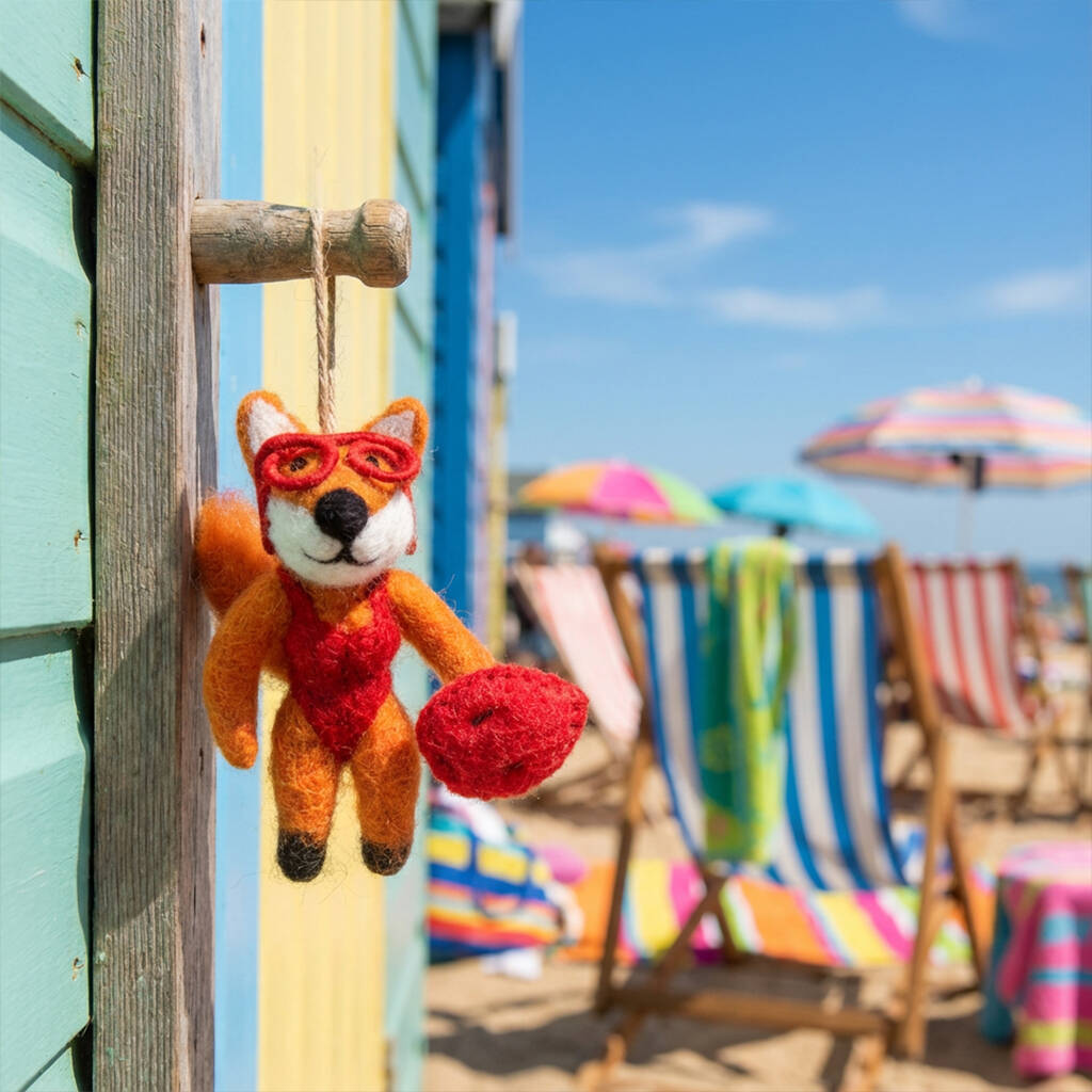 Lovingly handcrafted in Nepal, Baywatch Fox is 80% wool, 20% sass, and 100% ready to save lives! Donning her iconic red swimsuit that has been hand needled felted and matching red glasses, Baywatch Fox patrols the shores with dramatic slow-mo runs and heroic looks. Handcrafted in Nepal by skilled artisans, Baywatch Fox is proudly Fair Trade, plastic-free, and 100% committed to saving lives and the planet—one adorable rescue at a time.