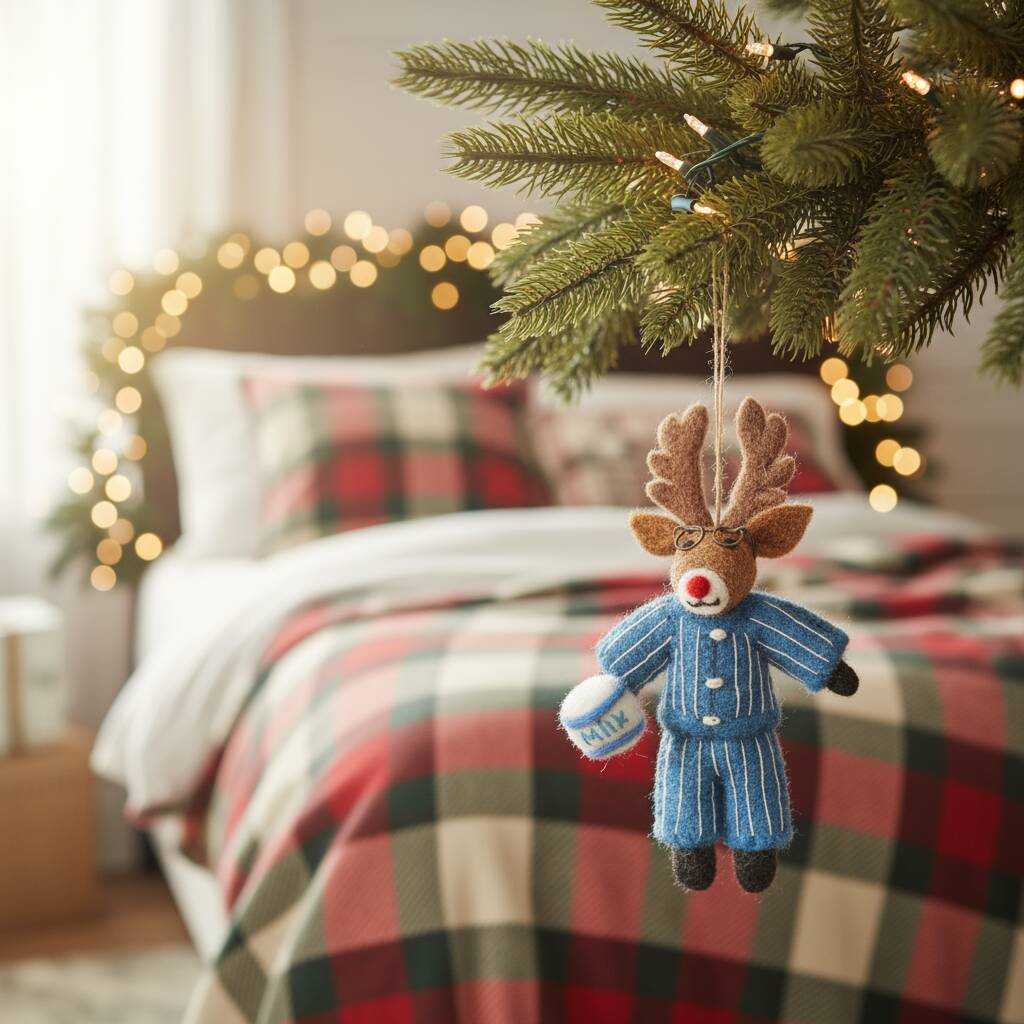 Handmade Felt Christmas Pyjamas Rudolph Decoration