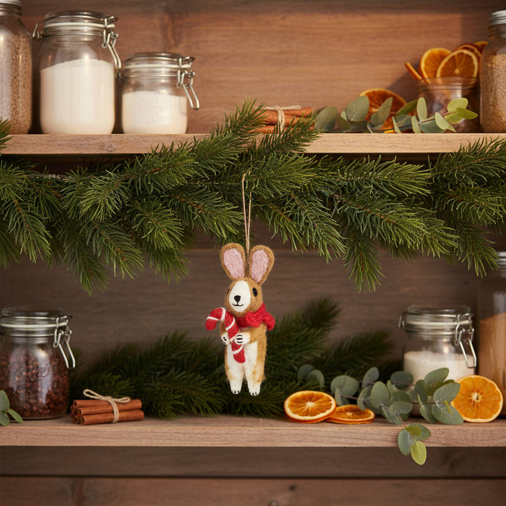 This adorable festive bunny has brought a candy cane Christmas present just for you!