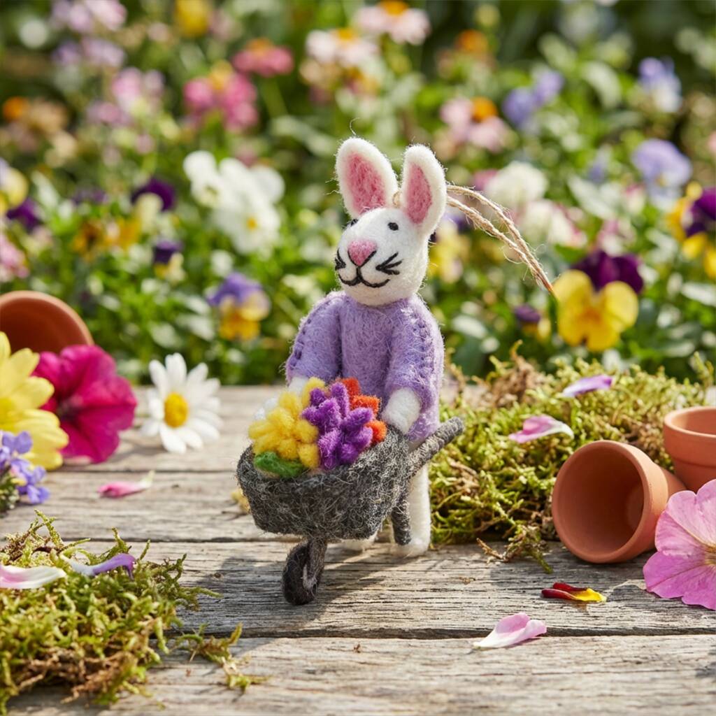 Is your home in need for a springtime refresh? Francesca the foral Bunny is a delightful bunny with a wheelbarrow overflowing with vibrant flowers.